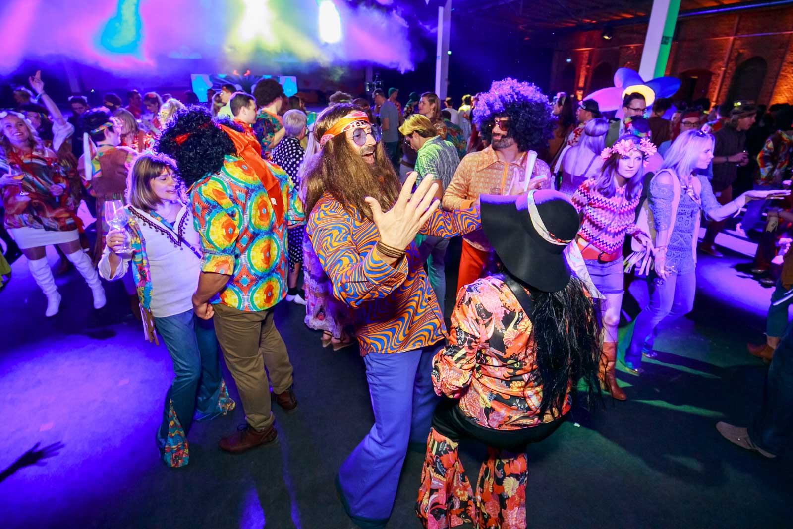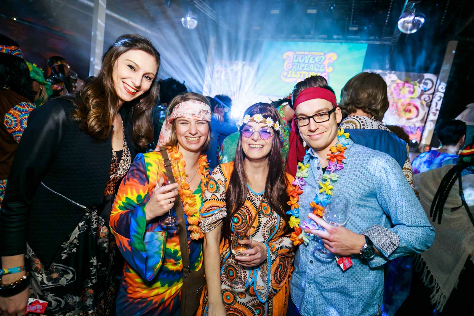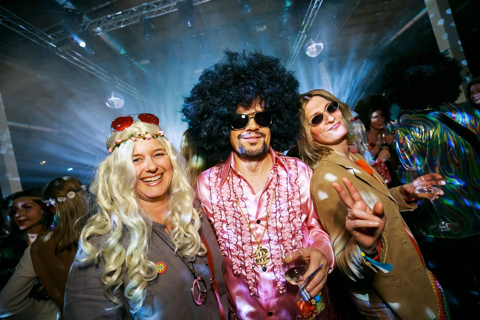 Die Party mit vielen Schlaghosen und Flowerpower stand ganz im Zeichen der 70er Jahre.
