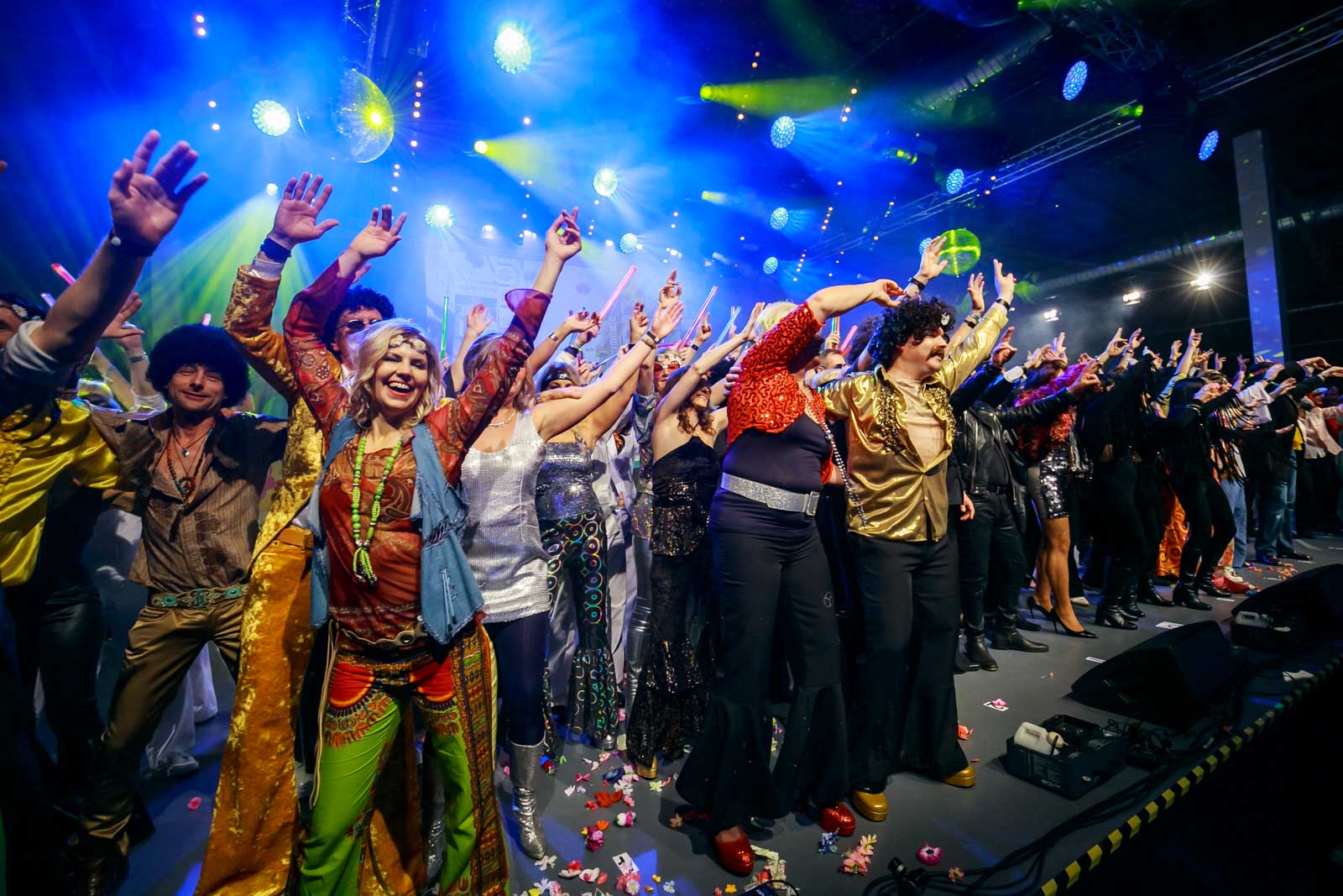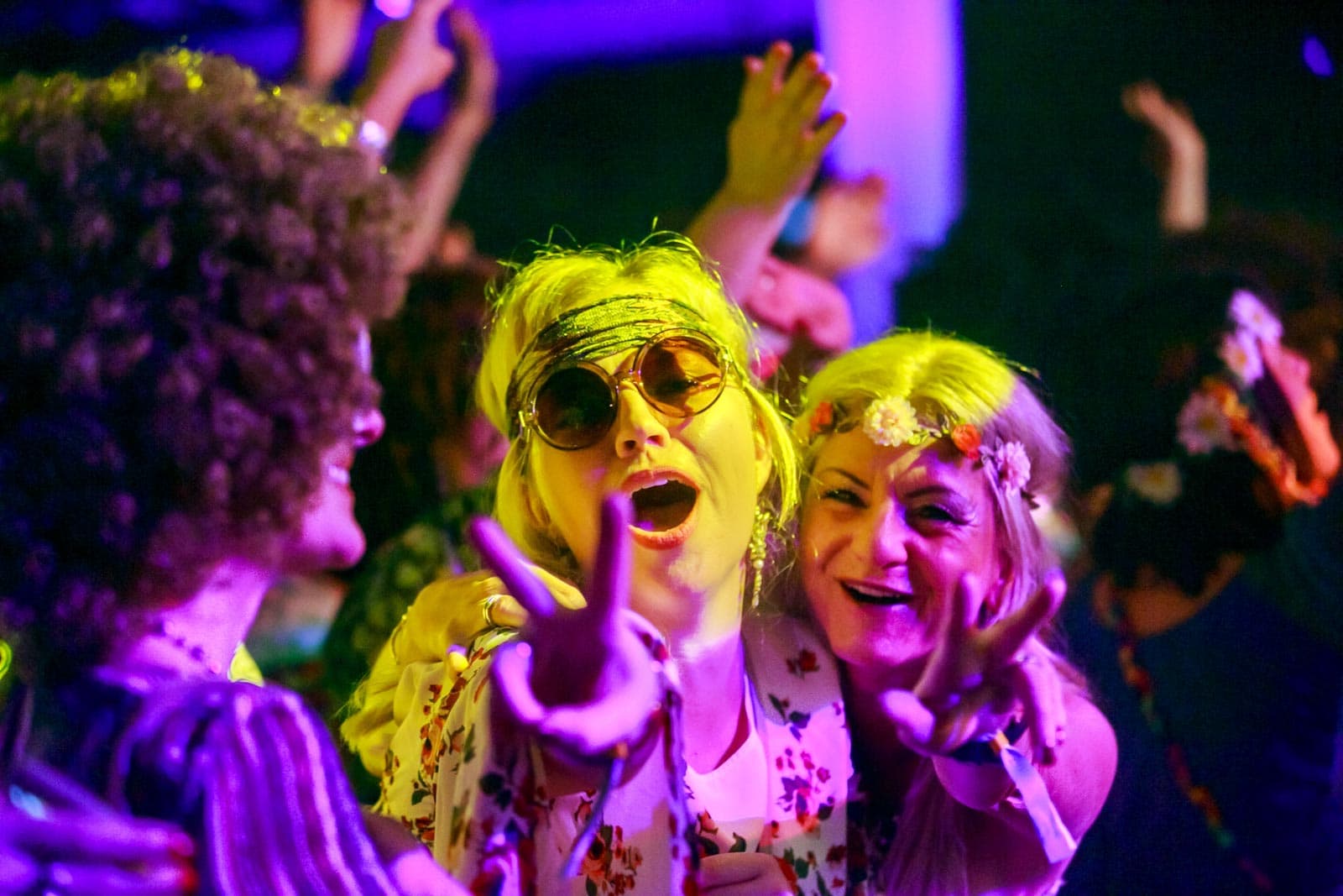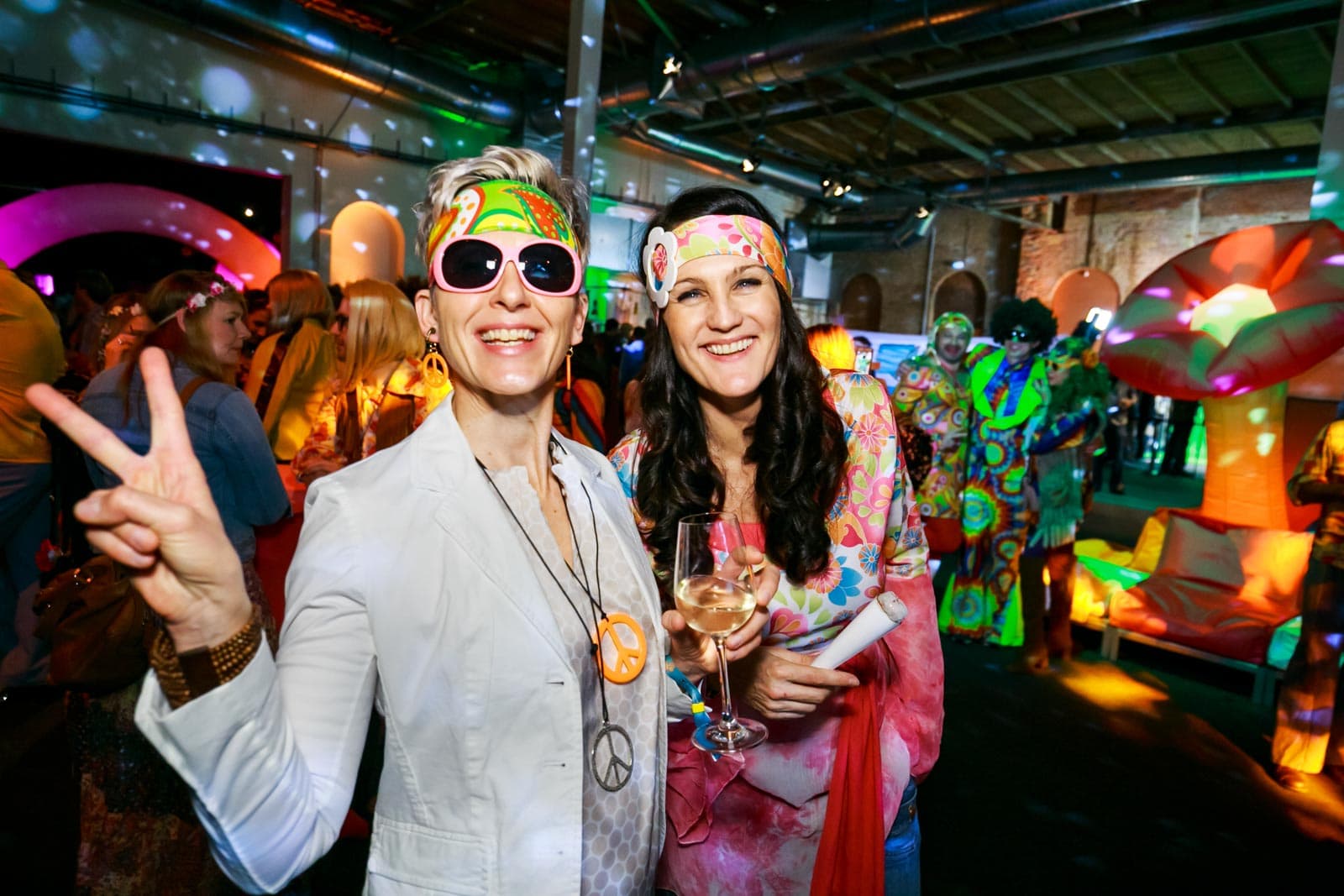Die Party mit vielen Schlaghosen und Flowerpower stand ganz im Zeichen der 70er Jahre.