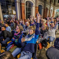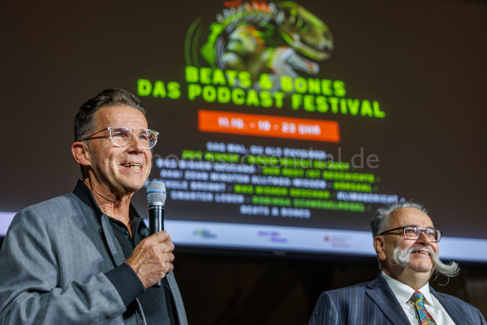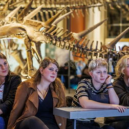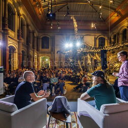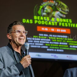 Beats & Bones ist das größte deutsche Wissenschaftspodcast-Festival – und findet jedes Jahr im Museum für Naturkunde Berlin statt. Gemeinsam mit dem Podcast-Netzwerk „Auf die Ohren" bespielt das Museum an einem Abend drei Bühnen mit Live-Podcasts, Vorträgen und Quizformaten aus Natur- und Geisteswissenschaften.