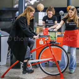 Eine Networking-Area lädt zum Austauschen ein – zwischen Publikum, Podcastern und Wissenschaftlerinnen und Wissenschaftlern.